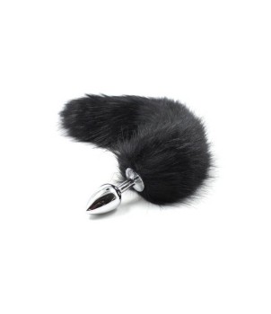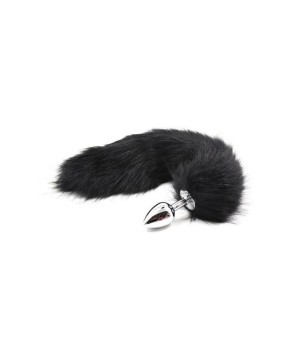 Plug Anale con Coda Long Fox Tail Nera in acciaio ed eco-pelliccia con coda di pelo lunga e colorata.