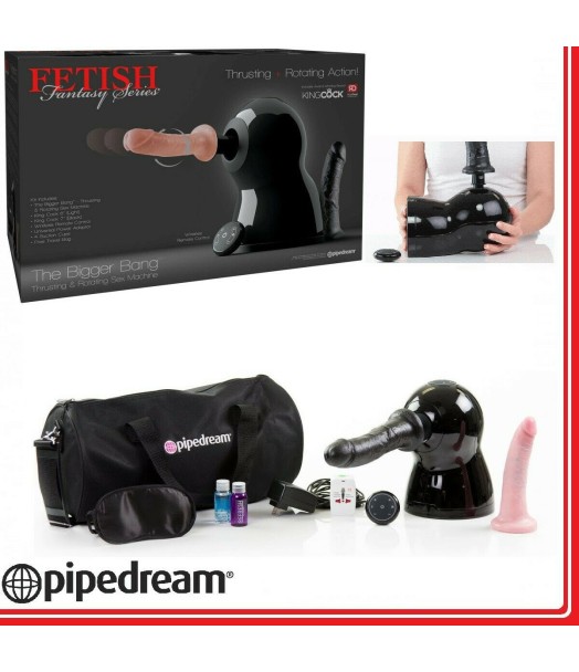 Il kit include: The Bigger Bang & Thrusting rotante Sex Machine, Dildo realistici King Cock 6 e 8 Pollici, Wireless Remote Control, Adattatore Universale, Borsa Bag Free Travel, mascherina in raso, campioni gratuiti di Moist Lotion & Toy Cleaner.