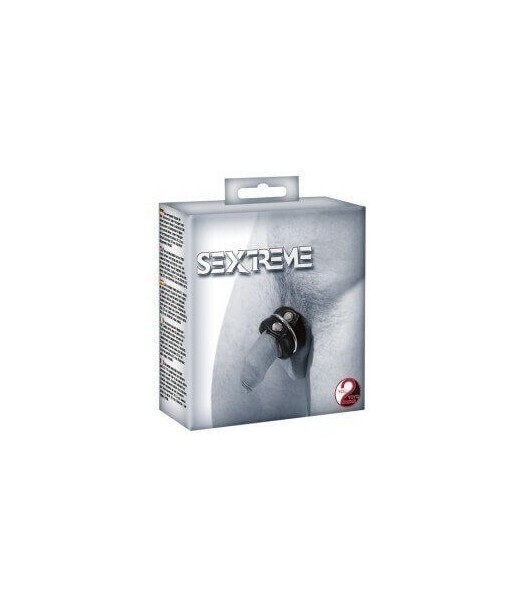 Cintura in pelle nera per il penecon un anello fallico di metallo. Pu essere usato insieme o singolarmente, con o senza includere i testicoli.