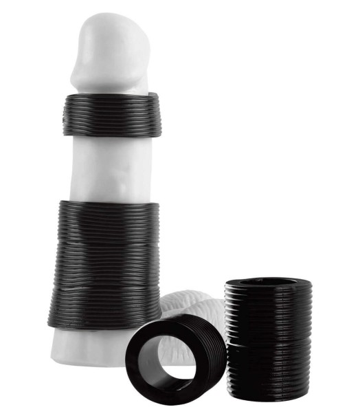 Anello fallico , FX GIRTH GAINER SYSTEM BLACK, permette di aumentare la circonferenze e grazie alle sue striature aumenta il piacere di lei.