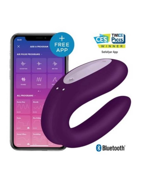 Vibratore Doppio con Applicazione Double Joy Purple questo innovativo massaggiatore offre la nuova app Satisfyer Connect compatibile con qualsiasi smartphone, tablet Android o Apple e Apple...